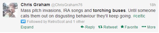It followed a statement from STV media darling and high profile Sevco fan, Chris Graham, who named Celtic directly in a tweet about the crime to almost 10,000 followers on Saturday.