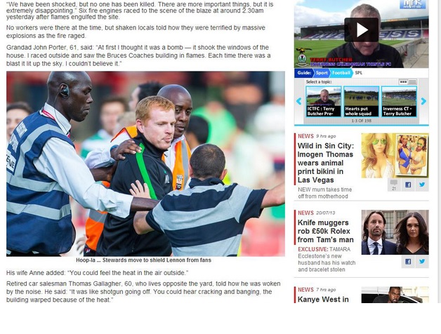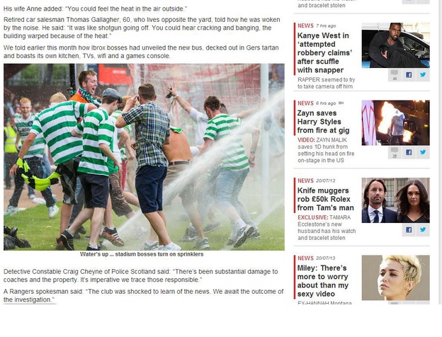 Today, the Scottish Sun compounded attempts to link Celtic Football Club to an arson attack on the new, state of the art, Sevco team bus, by inexplicably using photographs of Celtic fans and manager Neil Lennon to illustrate the bus firebomb story.
